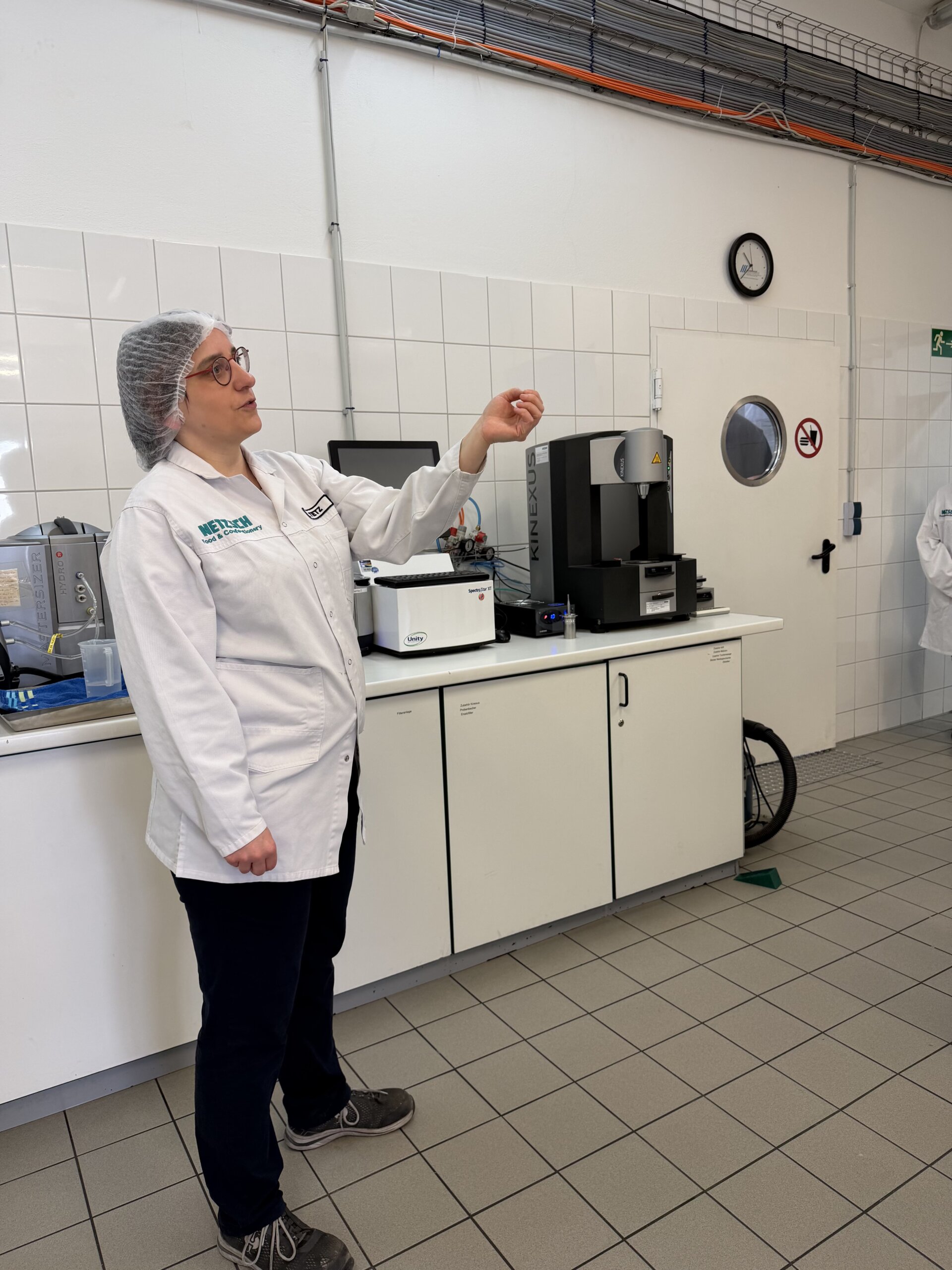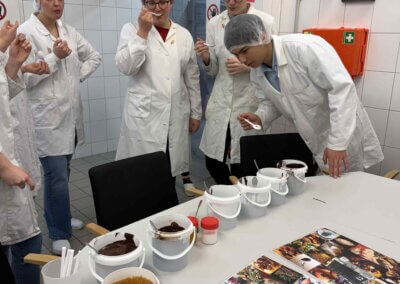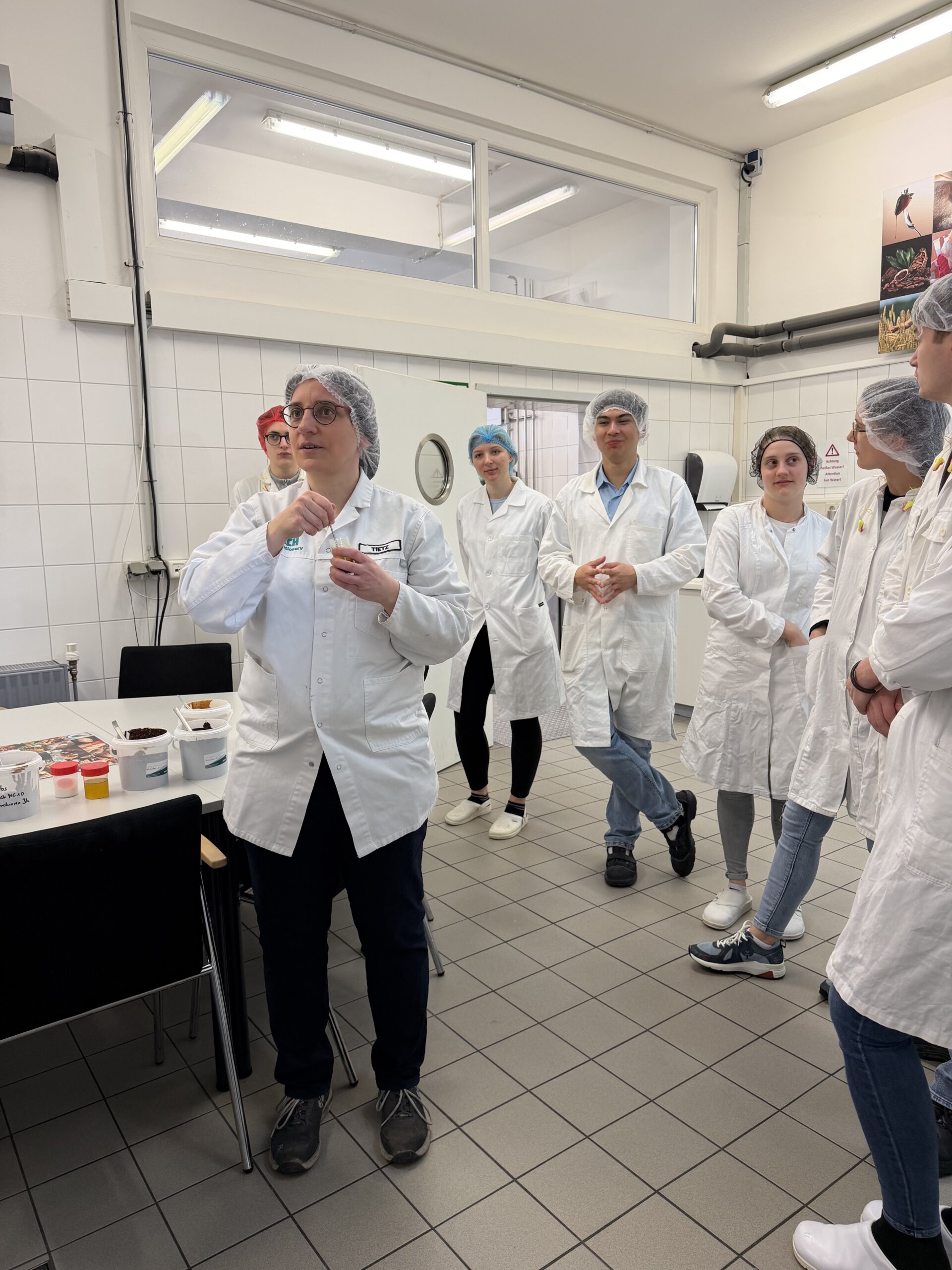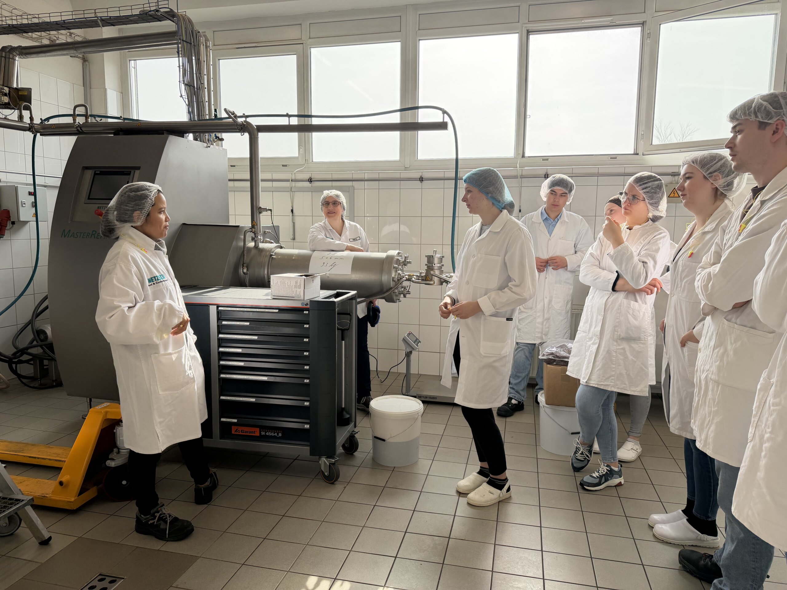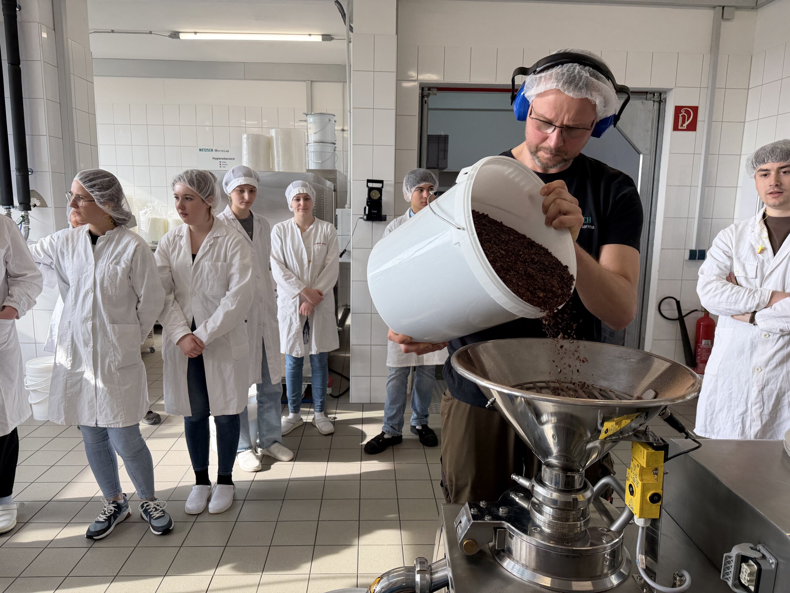 Der erste Programmpunkt führte die Gruppe zur Firma IREKS GmbH nach Kulmbach, dem Mutterkonzern von STAMAG. Bei einer umfassenden Betriebsführung erhielten die Teilnehmerinnen und Teilnehmer Einblicke in die Produktion und das umfangreiche Qualitätsmanagement des Unternehmens. Besonders eindrucksvoll war dabei die direkte Verbindung zwischen Theorie und Praxis: Viele der analytischen Methoden, die im Unterricht behandelt werden, konnten hier im industriellen Alltag wiedererkannt werden.