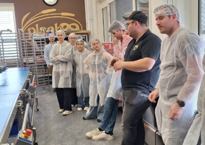 Am dritten Tag trat die Gruppe die Heimreise an, machte jedoch noch einen Zwischenstopp bei der Bäckerei Plank nahe Nürnberg. Dort wurden die Besucher von zwei jungen Bäckermeistern der Familie Plank empfangen. Bei einer Führung durch den Betrieb zeigten sie eindrucksvoll, wie handwerkliche Tradition, Innovation und Begeisterung für das Bäckerhandwerk zusammenwirken können.