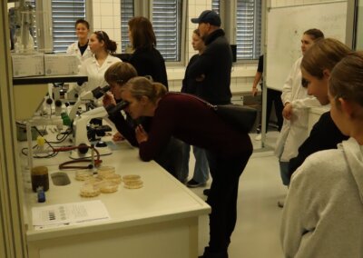 Selbständig oder im Rahmen von Führungen erkundeten die Gäste und deren Eltern die einzelnen Stationen, fühlten sich in Bäckerei, Technikum, Mühle, Nasschemie, Instrumentelle Analytik, Teigrheologie, Mikrobiologie, Konditorei, Projekt/DA bestens betreut.